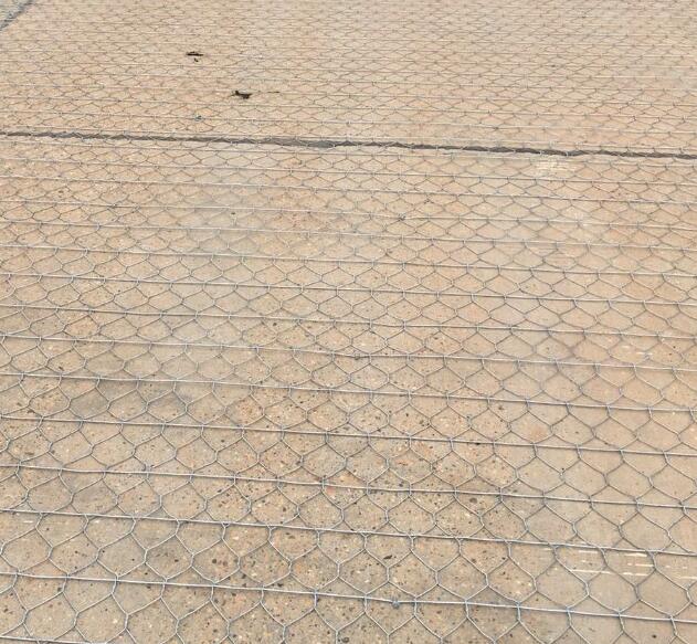 路面加筋網為機織雙絞六角形金屬網卷,網孔80mm?00mm間隔1645mm加一根筋絲3.4mm加筋棒加固,網絲直徑一般在2.0mm-2.4mm之間,網絲鍍層重量在30g/㎡-230g/㎡不等,網卷寬度1m-4m之間.