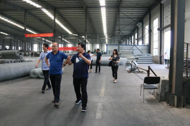 在公司車間,尚總向孫主任一行詳細介紹了石籠網的生產工藝流程,公司對原有的生產工藝進行改進創新,以及石籠網在防洪防汛應用中起到的河道邊坡防護防沖刷作用.隨后,孫主任又詢問了關于石籠網編織過程中的一些問題,并對公司科技創新項目取得的成就和投入力度表示贊賞,對公司以后的發展充滿信心和期望,并鼓勵我司積極參與其他的對外交流活動,孫主任表示,對外交流中心也會加強對項目的篩選及對優質項目的扶持,加強優秀企業對外品牌輸出力度,助力企業朝更好的方向發展.