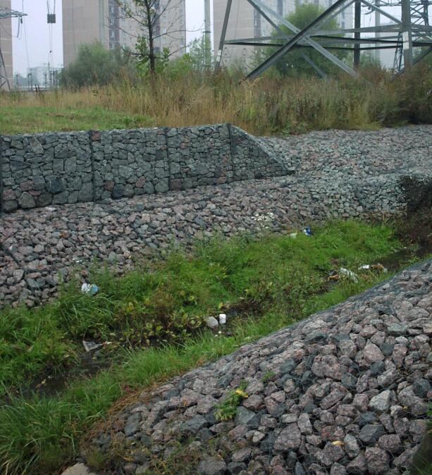 覆塑五絞生態固濱石籠墊治理河道技術是當前國內生態河道治理的新科技,也是覆塑五絞生態固濱石籠墊結構工程中的一項新技術. 覆塑五絞生態固濱石籠墊”工藝是指抗腐蝕、耐磨損、高強度的低碳鍍鋅鋼絲、鋁鋅合金鍍層鋼絲或包覆聚氯乙烯的同質鋼絲由專用機械編織成雙絞、蜂巢形網目的格網片,根據工程設計要求,裁剪、設計、組裝成箱籠并裝入塊石等填充料后連接成一體的結構,用作提防、路基防護工程